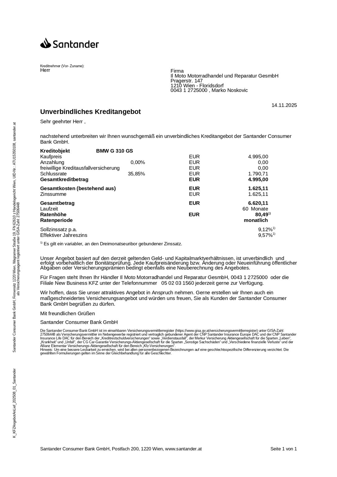 Wir erstellen dir gerne ein Finanzierungsangebot auch ohne Anzahlung mit monatlicher Rate oder 1/3 Finanzierung. Kein Kasko nötig.